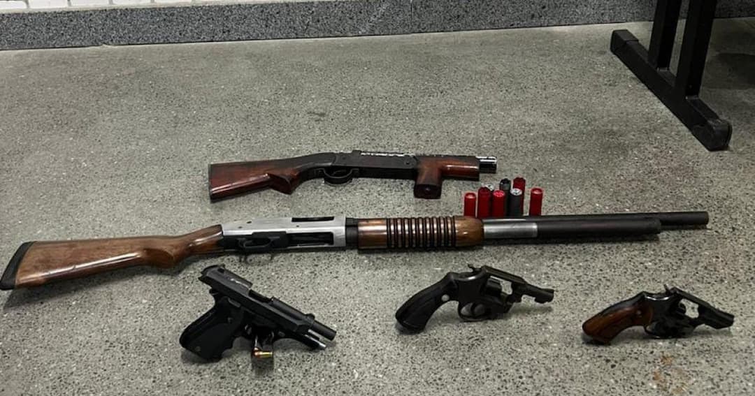 Com o quinteto foram apreendidos dois revólveres calibre 38, duas espingardas calibre 12, uma pistola calibre 380, carregador e munições.