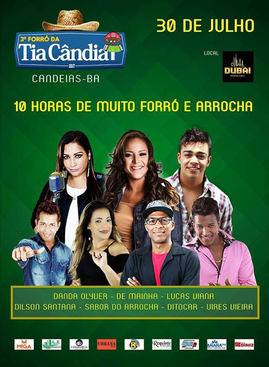 Contagem regressiva para o 3º Forró da Tia Cândia. A festa promete agitar o município de Candeias no próximo domingo (30) que está previsto pra começar a partir das 13h no espaço DUBAI. Serão 10 horas de muito forró e arrocha. Os ingressos estão à venda na Loja URBANA MODAS e em CHICO DO LICOR. Valor promocional de R$ 20 reais até sexta-feira (28).