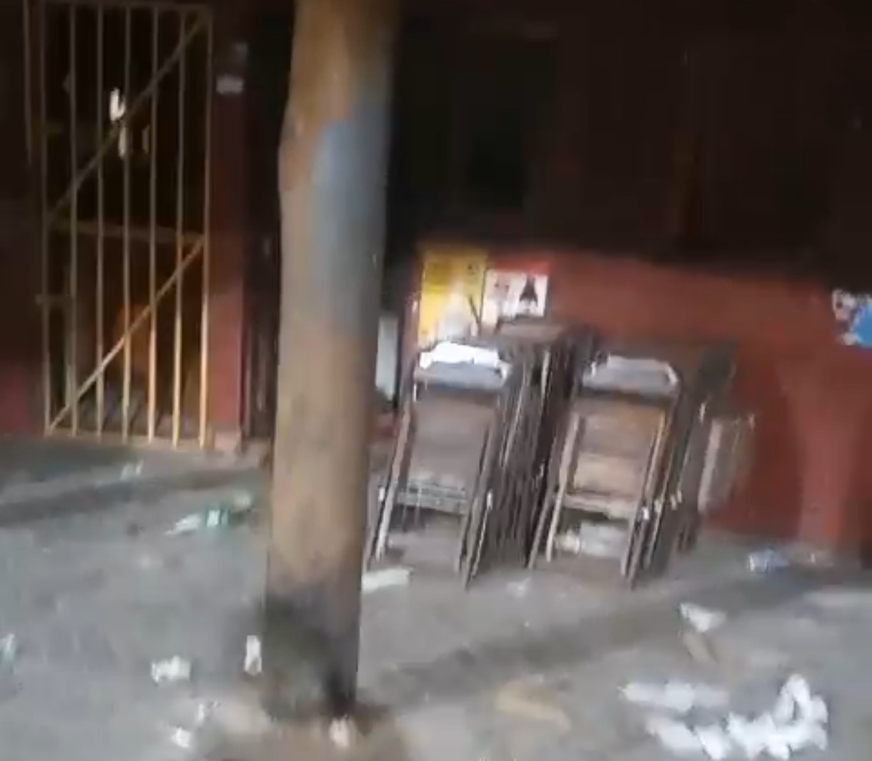 Vídeos mostram o cenário de destruição, com entulhos espalhados por toda a área e diversos objetos danificados, especialmente mesas e cadeiras. Outras barracas vizinhas tiveram portas e janelas destruídas.