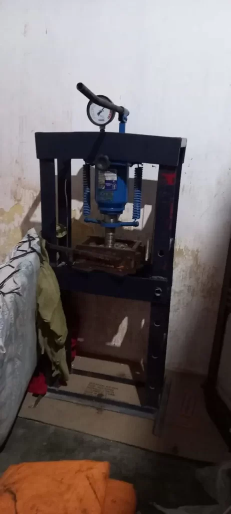 No momento, suspeitos que levavam uma prensa hidráulica para a casa perceberam a chegada da polícia e fugiram.