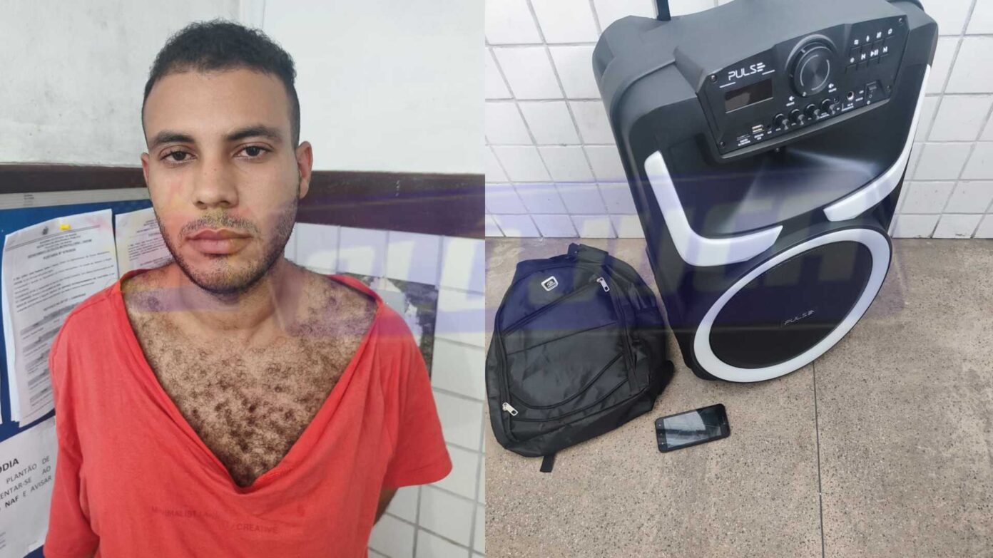 Um homem identificado como Flávio foi preso em flagrante nesta quinta-feira (2), em Candeias, após furtar uma caixa de som em uma loja de eletrodomésticos no município.