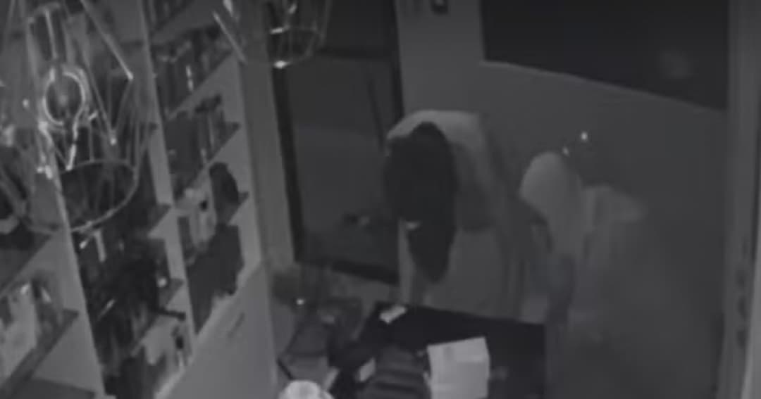 Ainda conforme as informações, o assalto ocorreu na madrugada da última quarta-feira (20), mas as imagens das câmeras de segurança da loja foram divulgadas nos últimos dias. O vídeo registra o momento em que dois homens, que estão com os rostos cobertos, arrombam a porta de vidro e entram no local.