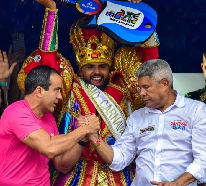 O prefeito de Salvador, Bruno Reis, e o governador do Estado da Bahia, Jerônimo Rodrigues, acompanharam, ao lado da realeza momesca, a abertura do Carnaval de Salvador 2025 no circuito Osmar, no Campo Grande, na tarde desta quinta-feira (27). No local, Bruno Reis e Jerônimo Rodrigues entregaram a chave da cidade de Salvador ao Rei Momo eleito, influenciador digital e ator, Hudson Marcello.