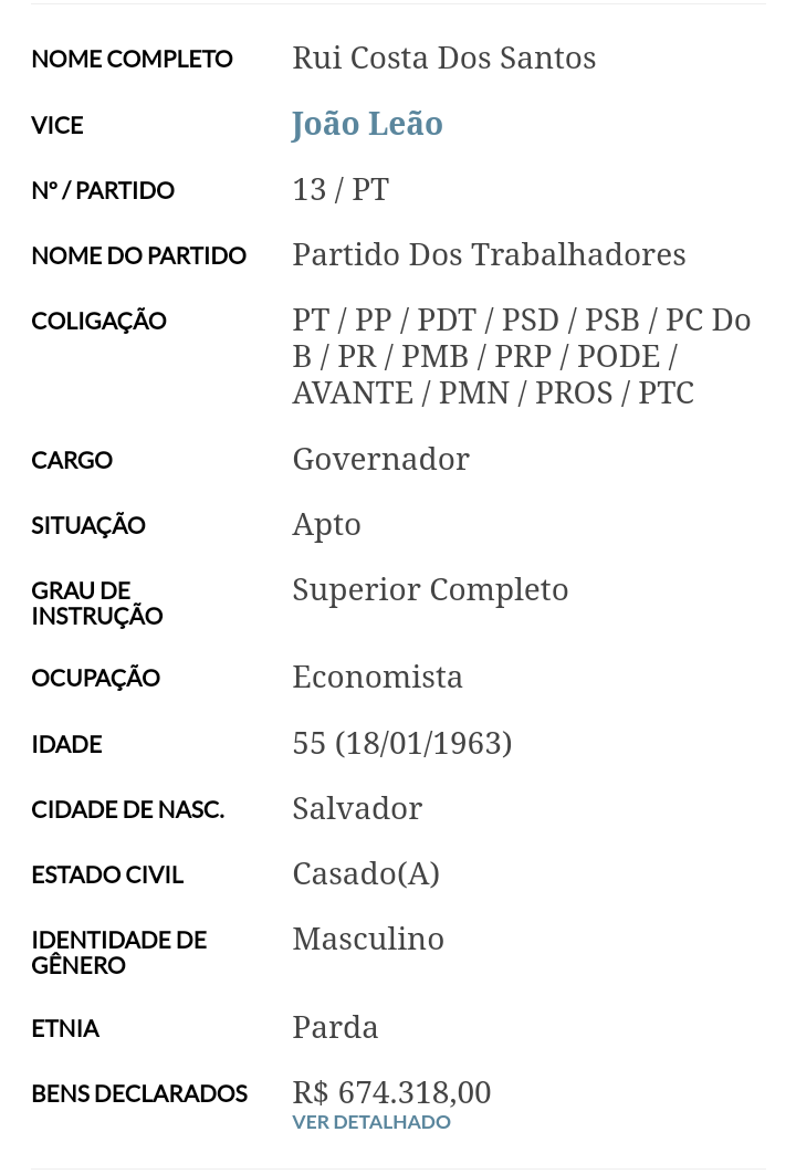 A mesma turma se esqueceu de comunicar que o governador Rui Costa (PT) se declarou pardo à Justiça Eleitoral nas eleições de 2018.