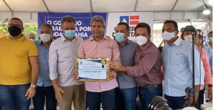 Um momento bizarro foi registrado durante a passagem do governador Rui Costa (PT) em Gandu, nesta terça-feira, 22. Acompanhado por sua comitiva, entre o pré-candidato a governador Jerônimo Rodrigues (PT), vereadores da base de apoio ao prefeito entregaram ao Secretário da Educação da Bahia o Título de Cidadão Ganduense.