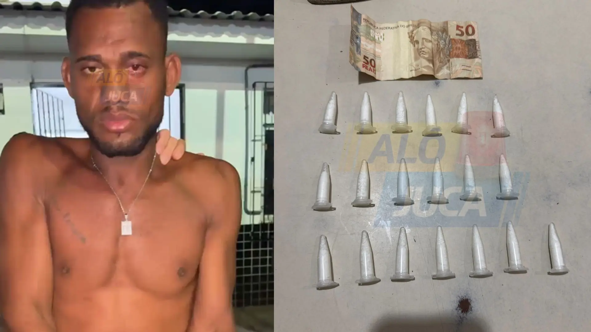 Durante abordagem, foram encontrados pinos de cocaína e dinheiro em espécie em seu bolso. Ele foi conduzido para a 20ª Delegacia Territorial (DT), onde a ocorrência foi registrada e as medidas cabíveis foram tomadas.