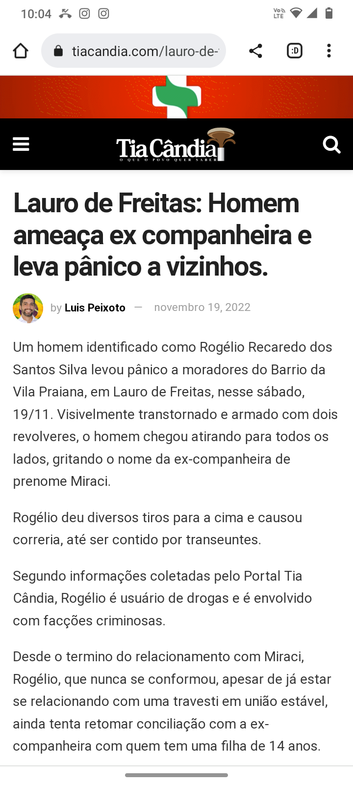 Caros amigos e seguidores, infelizmente, criminosos registraram um endereço no Registro.br com o nome do Portal de Notícias TIA CÂNDIA para atacar pessoas.