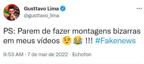 Para encerrar o assunto, o “embaixador” – apelido de Gusttavo Lima – recorreu às redes sociais negando o conteúdo do vídeo e publicou o áudio original, repleto de aplausos da plateia.