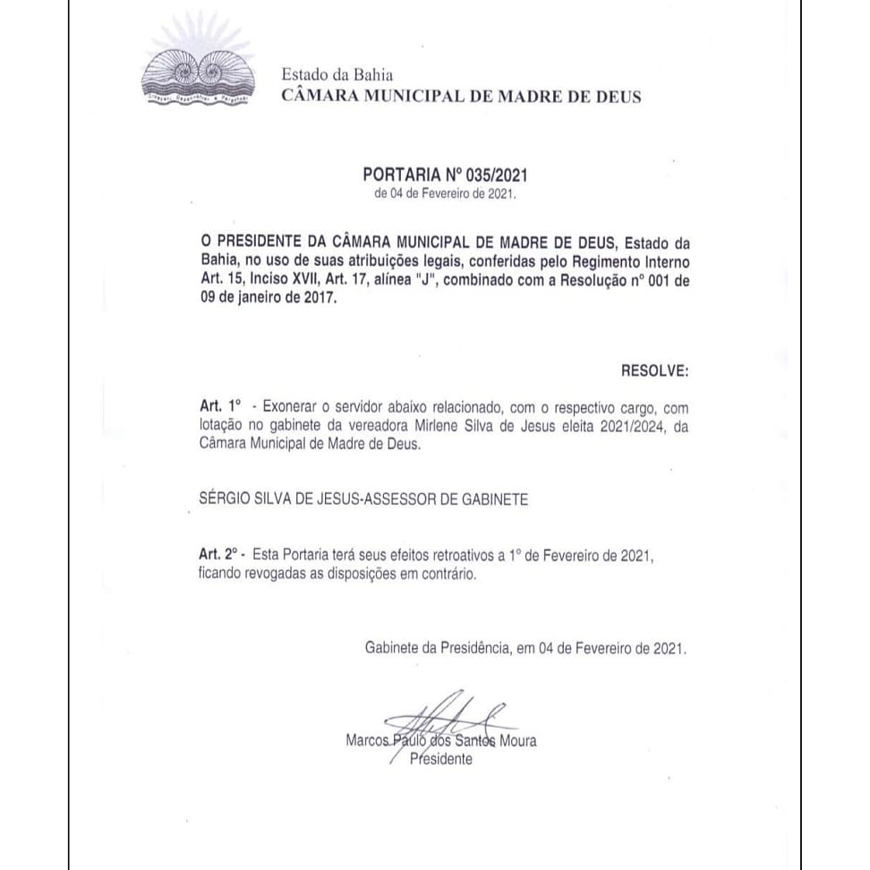 Em plena pandemia e o desemprego assolando na cidade, principalmente após o seu irmão Dailton Filho exonerar em massa os servidores, Mirlene empregou no mês de janeiro em seu gabinete o seu irmão Sérgio Silva de Jesus, mais conhecido como Serginho Parraxo.
